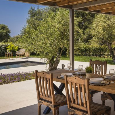 Κουζίνα πλήρως εξοπλισμένη με μηχανή espresso, πρέσα για καφέ φίλτρου, βραστήρα, τοστιέρα, φρυγανιέρα, φούρνο με εστία, φούρνο μικροκυμάτων καθώς και όλα τα απαραίτητα σκεύη και εργαλεία κουζίνας. Πλυντήριο πιάτων, πλυντήριο ρούχων, σίδερο-σιδερώστρα. Σαλόνι ενιαίο με την κουζίνα, μεγάλος καναπές που γίνεται κρεβάτι και τηλεόραση 55 ιντσών. Και όλα αυτά με θέα προς την πισίνα, τους καταπράσινους κήπους και την εξοχή.